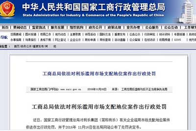 新華網(wǎng)北京11月16日電(記者婁奕娟)11月16日,國(guó)家工商行政管理總局官網(wǎng)發(fā)布處罰決定書稱,2009-2013年期間利樂(lè)集團(tuán)(簡(jiǎn)稱利樂(lè))有關(guān)企業(yè)濫用市場(chǎng)支配地位案件,對(duì)其依法作出行政處罰,其中處罰款近6.68億元人民幣。