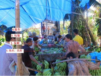 視頻中的香蕉為什么都是青的?王明月說,香蕉要在七八成熟的時候進行采摘。一般都會將香蕉置于冰水或涼水中降溫并洗去蕉油,然后置于含有保鮮劑的水池中浸泡數(shù)分鐘進行殺菌保鮮處理,晾干后用塑料袋包裝、抽真空、裝箱,然后馬上裝車運輸至冷庫貯存。